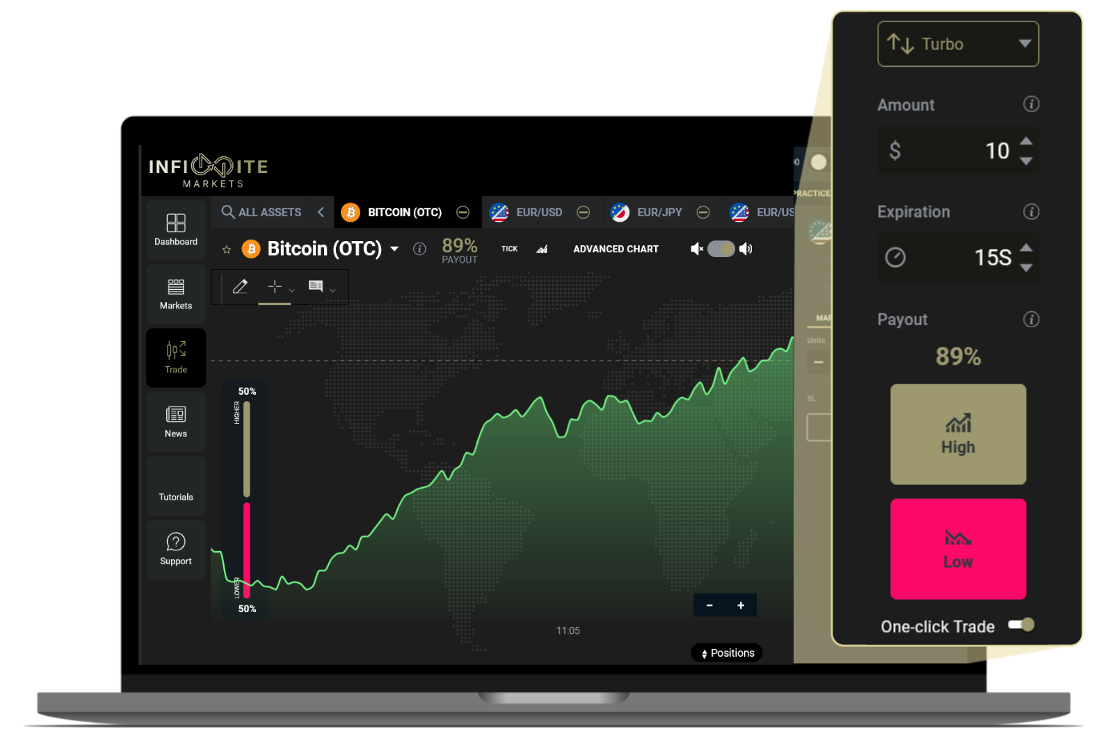 Join Infinite Markets and experience next-gen CFD trading with lightning-fast execution, real-time data, and intuitive tools. Bet on price direction, up or down, and profit from your predictions.